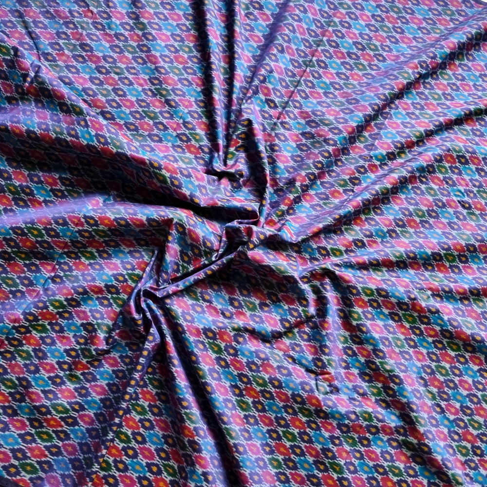 Silkcotton ikat yardage in purplish blue for making blouses, tops and kurtas available as 1m and multiples. Minimum order quantity 1m